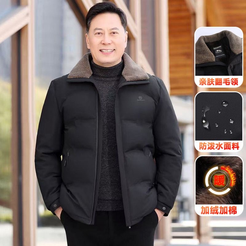 冬季男士加绒加厚款棉衣中老年人棉袄外套毛领爸爸装羽绒棉服冬装
