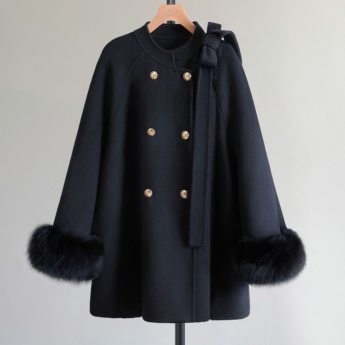 插肩袖中长款绵羊毛外套宽松款双面呢大衣